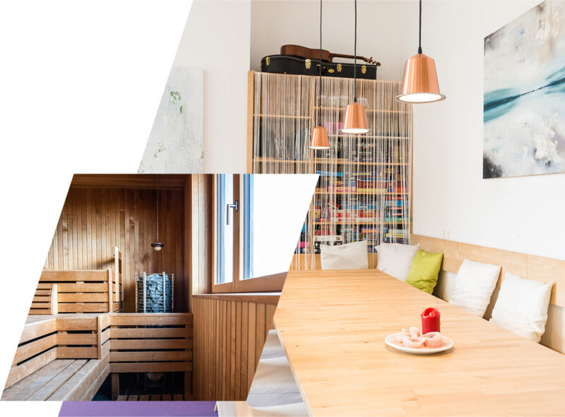 Die Hauswirtschaft bietet 48 Wohneinheiten sowie vielfältige Arbeits-, Kreativ- und Gemeinschaftsräume: Coworking-Spaces, Werkstätten und Studios, Meeting- und Workshopräume, einen großen Veranstaltungssaal, eine Gemeinschaftsküche mit Dachterrasse, sowie sogar neun Gästezimmer in der sogenannten „HausPension“.